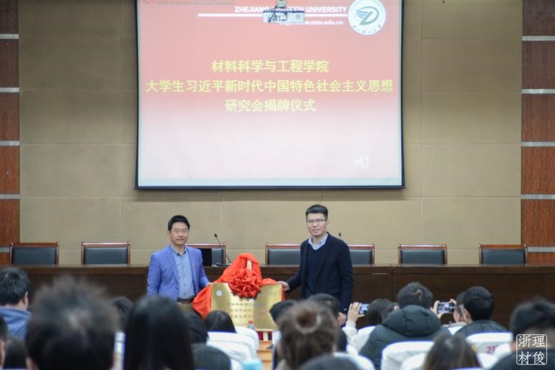 其后,郑显理老师和郑磊老师共同为学院大学生习近平新时代中国特色社会主义思想研究会会徽揭牌。