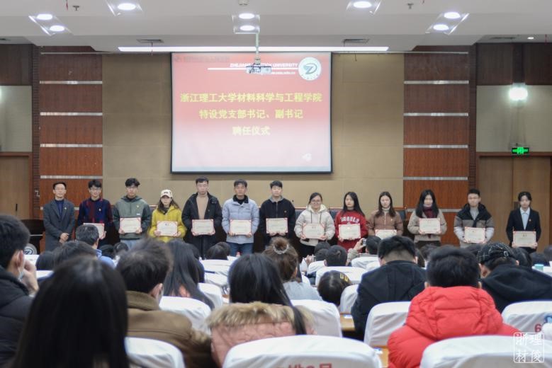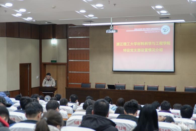 12月16日下午,材料学院特设党支部成立仪式暨大学生习近平新时代中国特色社会主义思想研究会第一次全体会员大会在行政楼二楼报告厅召开。校团委副书记郑磊老师,马克思主义学院郑显理副教授,学院党委副书记周照东老师,学院全体辅导员及学院208名学生党员参加活动。活动由学院学工办主任魏莉莉主持。