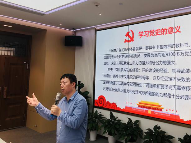 贺老师从党史学习的意义出发,以“学习党史,总结经验,继承发扬革命传统”为主线开展党校第一课。贺老师分别从新民主主义革命时期、社会主义革命和建设时期讲述中国共产党的百年党史:
