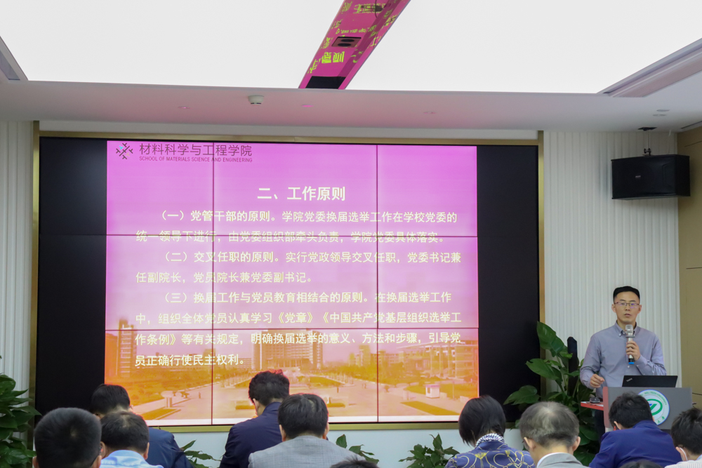 4月25日下午,材料学院在24-415报告厅举行学院党委换届选举工作动员大会暨理论中心组学习扩大会议。学院全体教职工、各党支部书记及支部委员等参加会议。会议由学院党委书记傅雅琴主持。