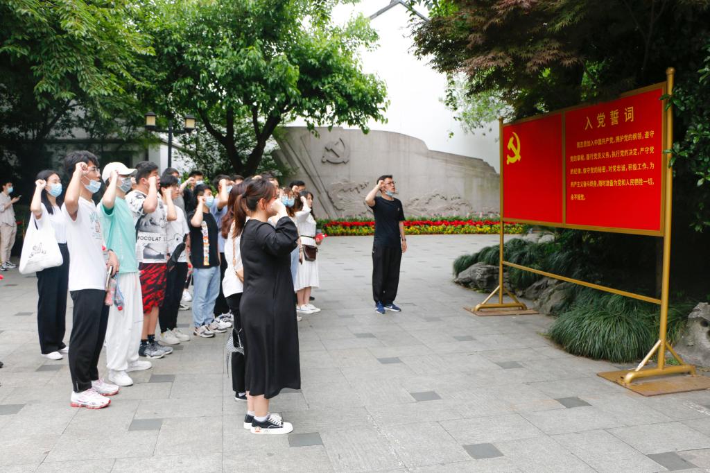 在中国共产党杭州历史馆宣誓墙前,学院组织员魏厚钱以“为什么大地春常在—致敬党史上的每一位英雄烈士”为主题进行党史课的分享,从《英雄儿女》中的王成,到《我和我的祖国》里的“前夜”,与大家分享了为新中国献身的广大英烈的故事。“为什么大地春常在?为什么战旗美如画?”正是一代代先辈的前赴后继,才有了我们现在衣食无忧,昌盛强大的祖国。最后,魏厚钱老师为学员们讲述了小萝卜头的故事:一个从小在监狱长大的男孩,通过定期的学习“特权”,以特殊的方法为中共传递重要情报,在8岁时被国民党残酷杀害,他却成为了中国历史上年龄最小的烈士,启发在场党员们要懂得感恩,“吃水不忘挖井人”,认真思考在今后的学习生活中能做些什么?