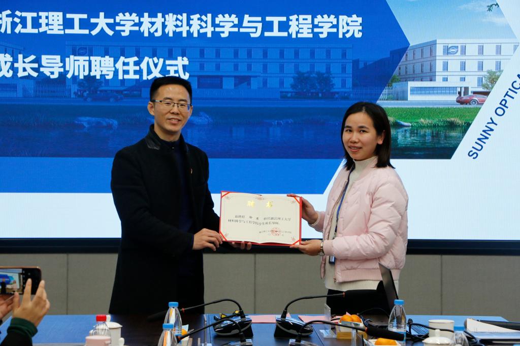 周照东与诸杏珍共同签订《校企党建共同体合作协议》,并为校企党建共同体进行揭牌。集团人力资源部副部长焦树坤与学院教科办主任易丽丽共同为大学生实习基地揭牌,集团人力资源部副部长焦树坤与学院团委书记、学工办主任张姗姗为大学生社会实践基地揭牌。会上周照东代表学院聘任招聘经理徐君作为材料学院学生成长导师,为学院人才培养增添力量。