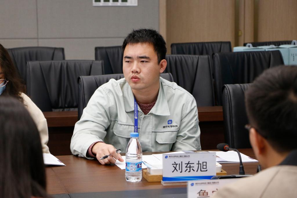 校友座谈环节中,舜宇车载光学项目质量BP二课副课长苏琪映、舜宇浙江光学镀膜技术助理工程师刘东旭两位校友根据目前各自的工作内容、工作感悟、对母校及老师们的怀念感激等作了发言,回忆了在母校材料学院时的学习与科研状况,言语中透露出亲切与怀念。学院老师也就校友们在舜宇的发展前景、对学院学校工作的建议等方面作了交流探讨。