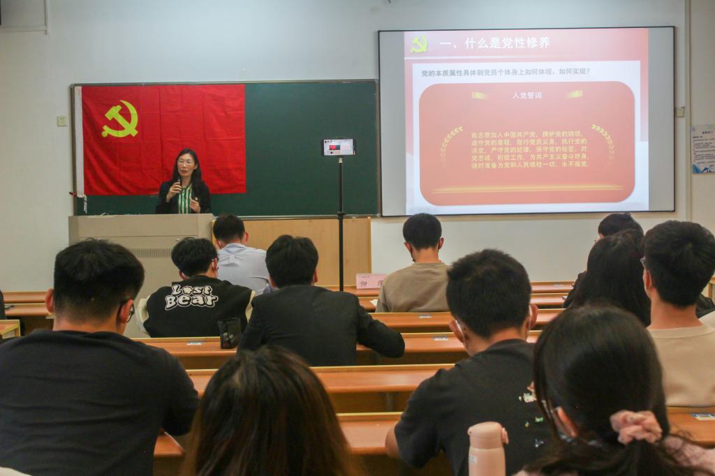 开班典礼结束后,学院党委书记仰滢老师为大家带来“材俊先锋”论坛暨党校第一讲:《加强党性修养,争做时代先锋》。仰老师从三个数字“100,9500,14”为切入点带入启发,从什么是党性修养,为什么要加强党性修养,如何加强党性修养三个方面展开。从马克思经典著作到习近平总书记重要讲话,仰老师引经据典,系统阐述了党性修养的深刻内涵,研究生预备党员韩井闯结合入党誓词分享了他对党性修养的理解。关于加强党性修养的意义,仰老师指出,这是关系到党的生死存亡的重大政治问题,是完成新时代党所肩负历史使命的需要,是永葆党的先进性和纯洁性的需要。在如何加强党性修养方面,仰老师从欧阳兆锋、我院挑战杯国赛一等奖团队、考研学霸班、青年志愿团队等身边的榜样展开,分享了这些团队和个人优秀事迹背后的成功密码。课上,研究生预备党员宋文敏分享了她的入党介绍人欧阳兆锋的优秀事迹,本科生入党积极分子罗俊分享了他在2018级考研学霸班事迹的激励下,2019级本科生同学们立志考研的信心决心。大家都从身边的榜样身上学习到了如何用实际行动加强自己的党性修养。