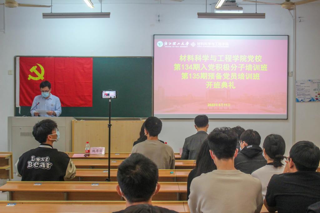 为进一步提高预备党员和入党积极分子的政治素质和理论修养,教育和引导广大青年骨干的坚定理想信念。5月11日,yl88858永利集团在2-S127教室举分党校入党积极分子培训班(总第134期)、预备党员培训班(总第135期)开班典礼暨“喜迎党的二十大 共筑材料强国梦”红色材俊文化节启动仪式。学院党委书记仰滢老师,学院党委副书记、纪委书记周照东老师,学院组织员魏厚钱老师以及180位新一批预备党员、入党积极分子学员们共同参加。活动通过线上线下相结合形式开展,开学典礼由组织员魏厚钱主持。
