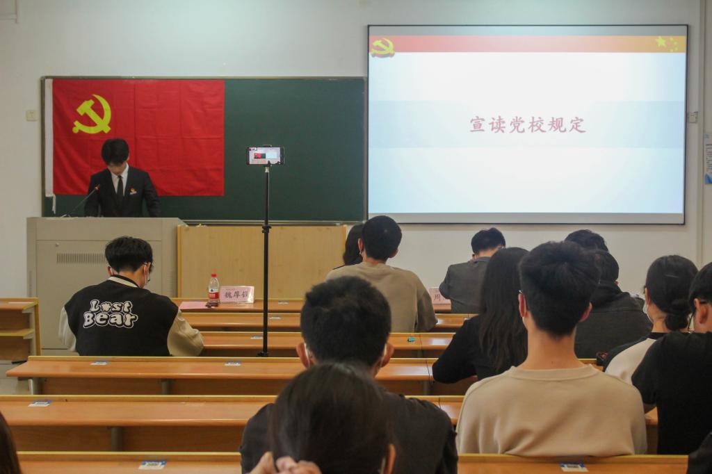 开班典礼在雄壮的国际歌中拉开帷幕,全体学员首先观看学习了习近平总书记在庆祝共青团成立100周年大会上的重要讲话视频,大家深刻感受到习近平总书记对于青年人的关怀与寄望。预备党员宣誓环节中,魏厚钱老师带领全体预备党员高昂热情地进行了庄严的入党宣誓,在场正式党员一同重温入党誓词。学院党建委学生干部薛林昊宣读党校守则,从学员守则、学习要求、考勤和纪律三个方面对党校管理规定和结业要求进行阐述。