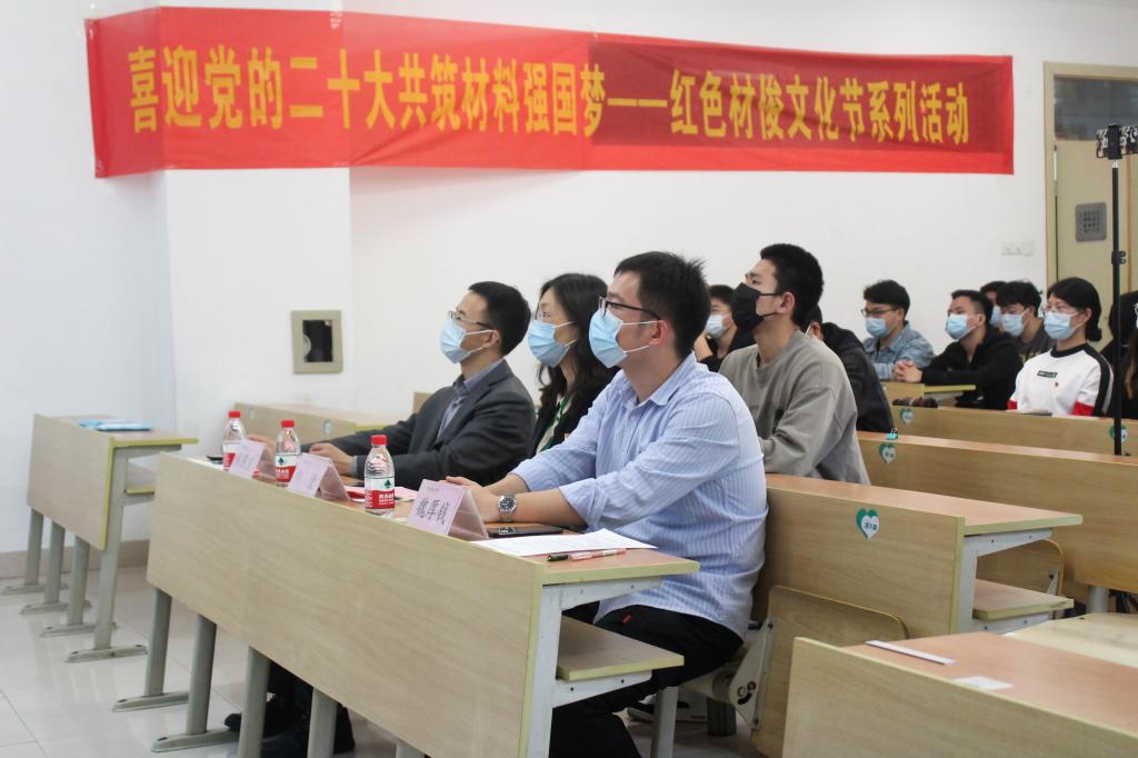 为喜迎党的二十大召开,材料学院倡导广大学子专心学术科研,开拓奋进,砥砺前行,弘扬材料领域科学家精神,讲好材料强国故事,传递浙理材俊好声音,举行“喜迎党的二十大 共筑材料强国梦”红色材俊文化节。在文化节启动仪式上,周照东老师对红色材俊文化节系列活动进行介绍,主要包括红色文化学习篇、红色征程教育篇、红色使命实践篇、红色初心感悟篇等4个专题,20余场活动。周照东老师鼓励大家未来积极响应、主动参与、深入实践、收获成长,充分展现材料学子的科研精神和使命担当。