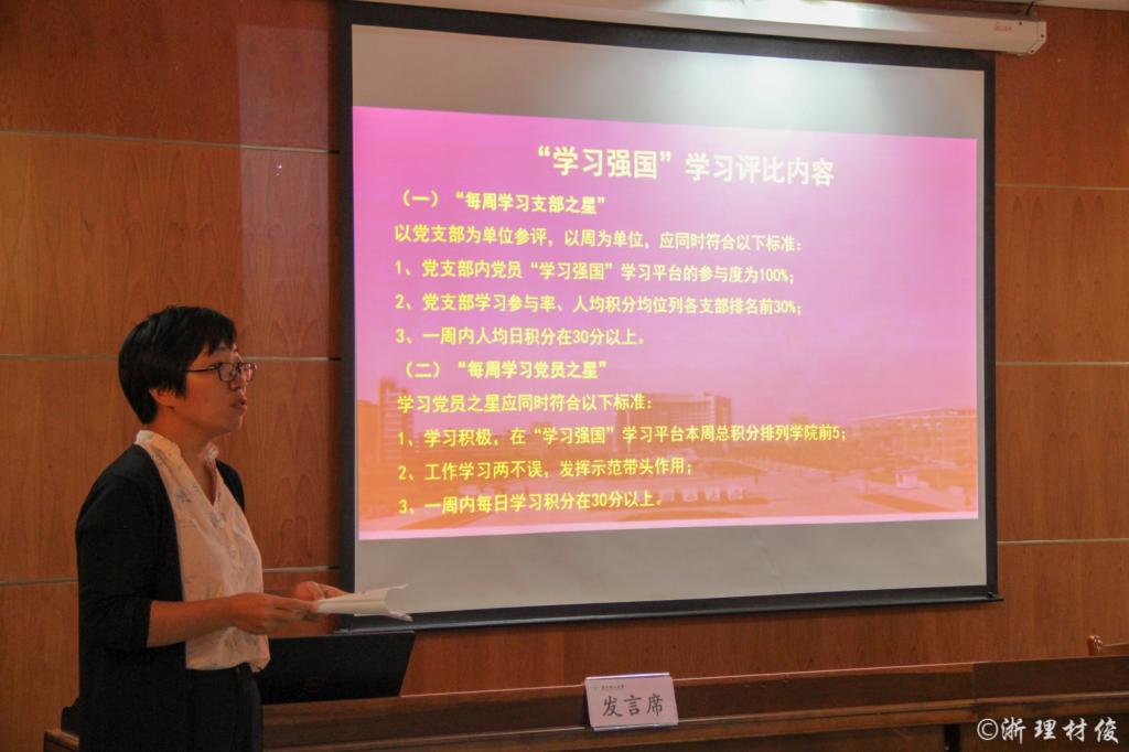 最后,党委委员周照东老师部署近期主题教育相关工作。下发并讲解了主题教育的有关工作和时间节点,并对每一项主题教育内容提出明确要求。他强调各支部一定要在思想上高度重视主题教育工作,扎扎实实推进每一项工作,避免流于形式和敷衍了事,学院党委将不定期对支部工作和学习情况进行抽查。关于学习强国学习平台,他认为,“学习强国”平台作用巨大,这不仅在学习方面有所体现,更为生活和工作提供很多素材。同时,他指出学习强国学习评比的目的不在于评比,而是希望充分调动大家的学习积极性,在评比的同时也进行一定的奖励和鼓励最终,通过各支部的共同努力,确保学院主题教育成效取得最大突破!