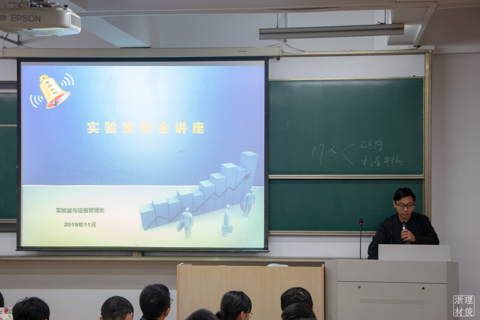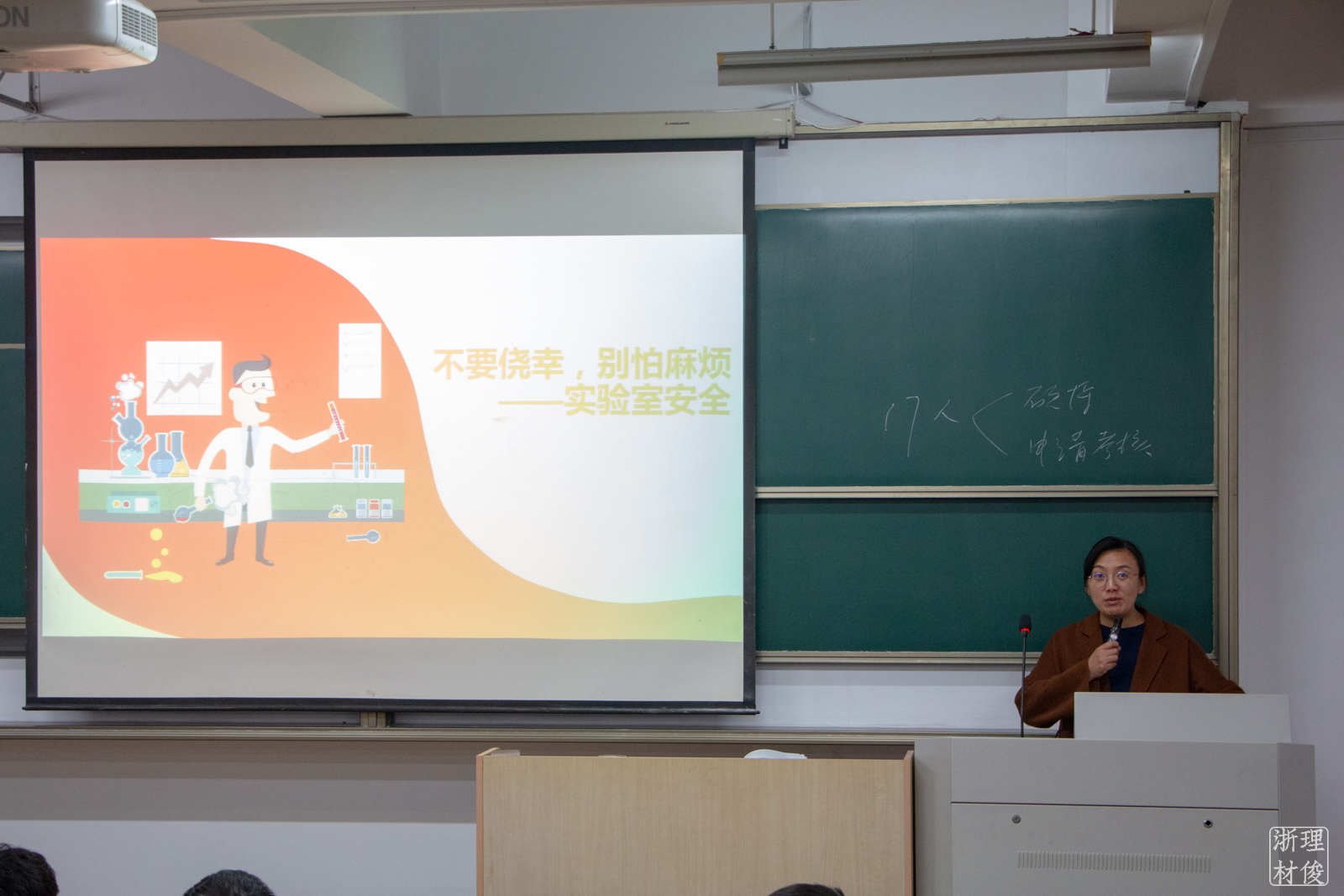 校实验室与设备管理处王江老师、学院副院长杨叶锋副教授、学院党委委员周照东老师、高分子系副主任张明副教授出席了本次大会。大会由学院学工办主任、研究生辅导员魏莉莉老师主持。学院全体2018级、2019级研究生、博士生参加此次大会。