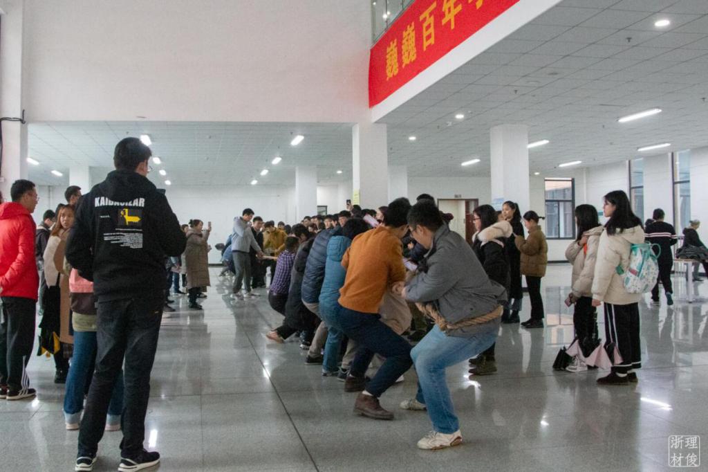为进一步丰富校园生活,加强学院教职工之间、师生之间的联系和沟通,增强学院发展的凝聚力和向心力,12月25日,由学院工会、学院青年教师发展促进会联合举办的“迎新贺岁”拔河比赛暨游园趣味会在25号楼大厅举行。