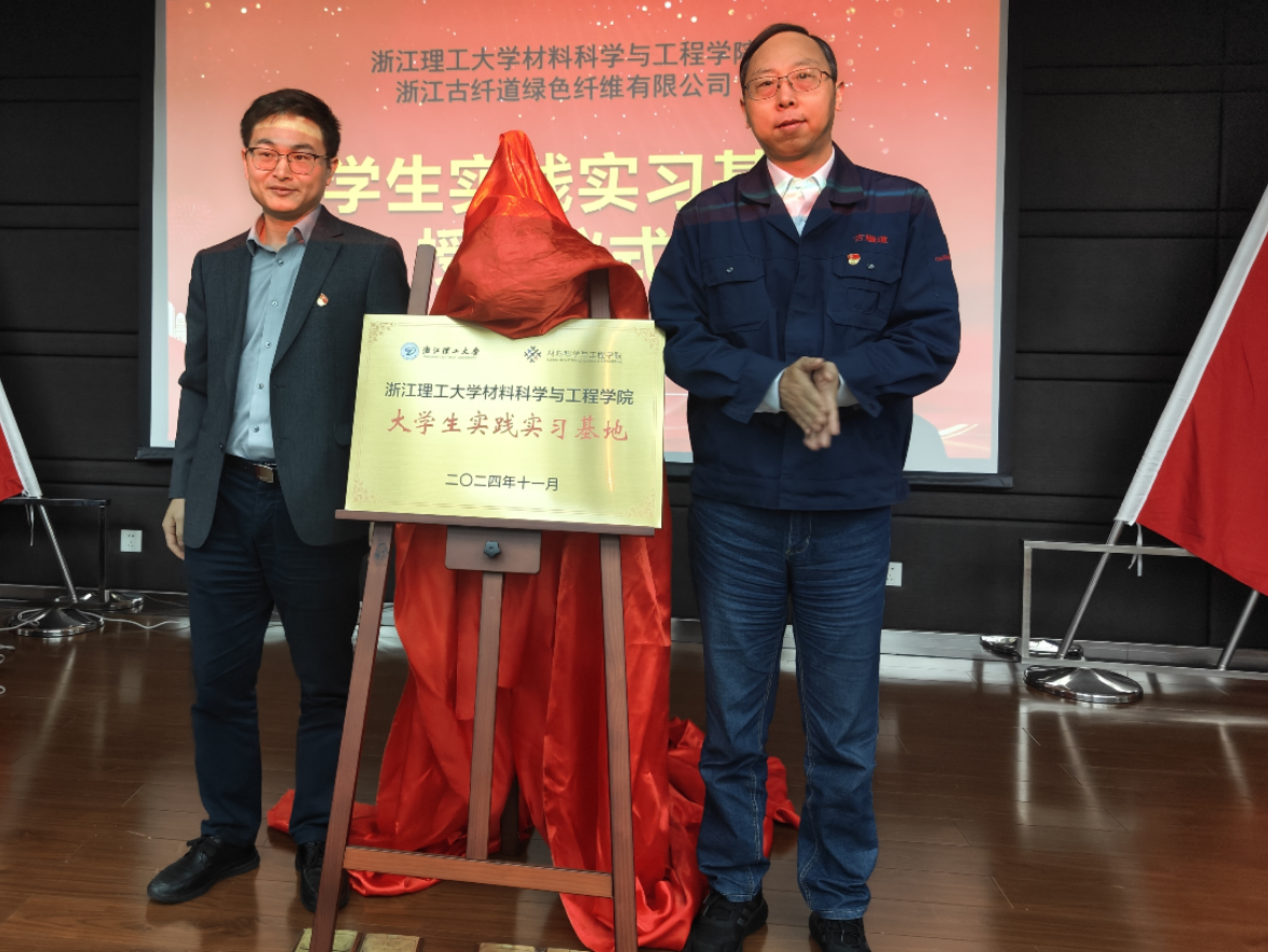 浙江古纤道绿色纤维有限公司专业生产改性聚酯切片、差别化涤纶工业纤维材料,产品可广泛应用于汽车工业、建筑工程、包装材料、休闲运动、防护设施等领域。材料学院与古纤道公司具有深厚的合作基础,2019年12月,中国工程院院士、材料学院教授陈文兴与古纤道共建院士工作站正式签约启动。2021年2月,校企双方签署全面战略合作协议,学校协同公司科技创新,深化产学研合作。双方始终围绕聚酯产业链关键共性问题研发,新产品研发、聚酯材料前沿技术等课题开展全方位合作,共同创新引领行业发展。2021年12月,学院与古纤道举行党建共同体签约揭牌,以党建引领双方全方位发展。