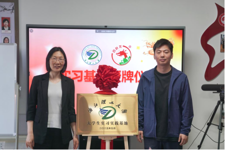 座谈会现场举行85588永利集团大学生实践实习基地授牌仪式,学院党委书记仰滢向浙江昊能科技有限公司总裁卢宏庆授牌。