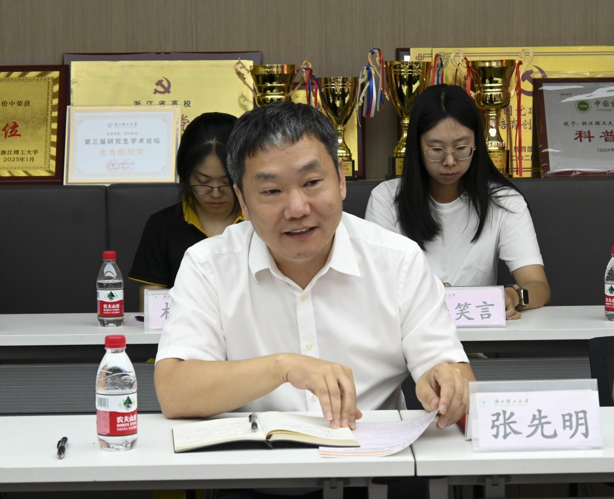 学院党委书记仰滢为第三届青促会理事长陈世昌授旗,现场响起热烈掌声。随后,第三届青促会理事长陈世昌发表就职讲话。他首先对第二届青促会的工作成果表示肯定,并感谢全体理事及会员的辛勤付出。针对第三届青促会的工作规划,他提出三点要求:一是强化思想引领,筑牢青年成长的思想根基;二是聚焦学术创新,搭建跨学科、多层次的交流平台,鼓励青年大胆探索前沿领域;三是深化服务职能,精准对接青年在科研、就业、成长中的需求,切实为青年排忧解难。他表示,将带领第三届理事会全体成员恪尽职守、锐意进取,推动青促会工作再上新台阶。