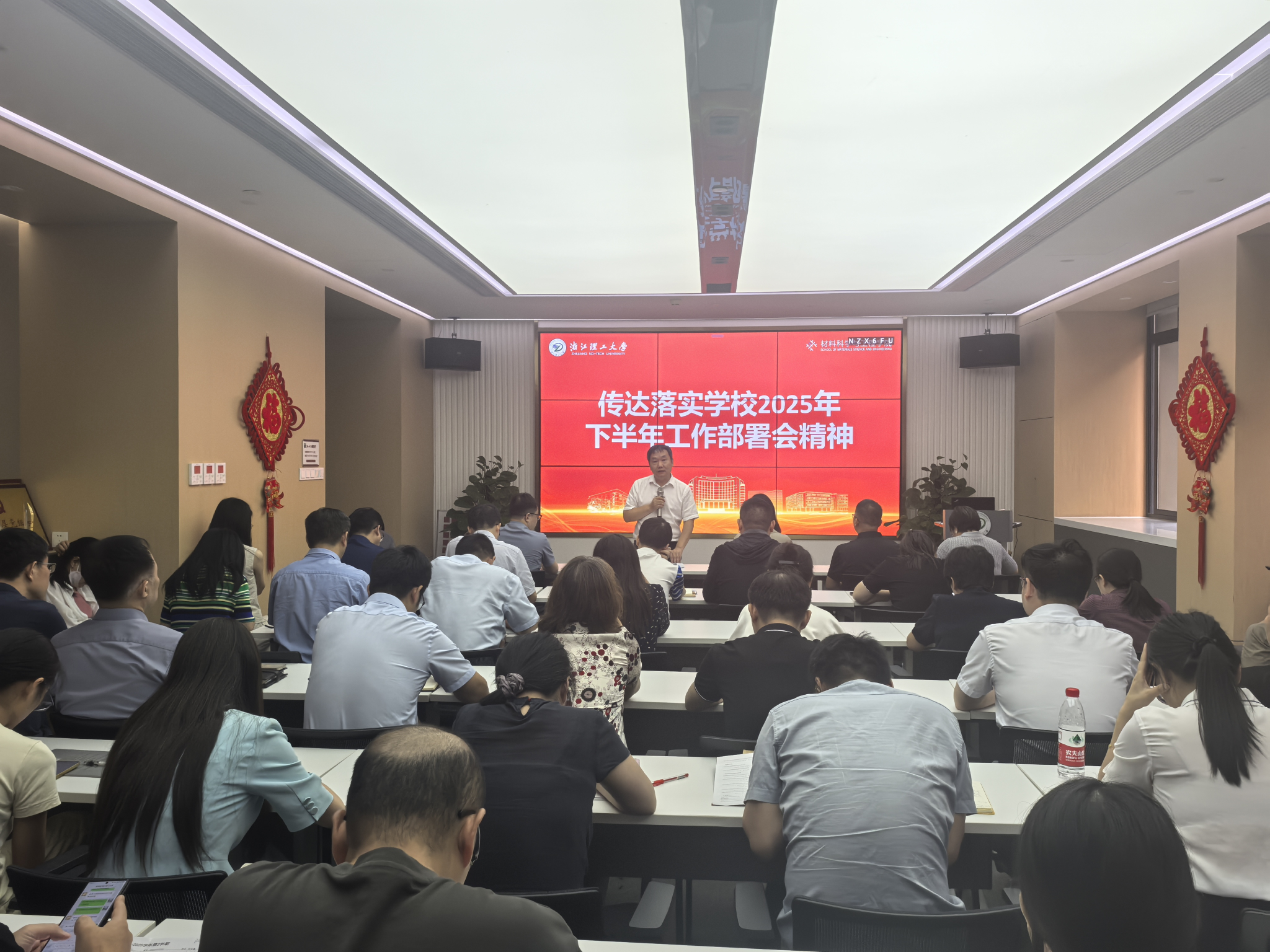 院长张先明传达了学校2025年下半年工作部署会精神,结合学院实际提出新学期重点工作要求。他强调,学院发展要“立地顶天、勇立潮头”,主动服务国家战略,全力推进博士点申报等关键工作,聚力落实“登峰学科”建设,迭代升级人才培养体系。同时,要积极争取浙江省教学成果奖、国家级一流课程,加强师资队伍建设与优秀人才推荐,推动科研工作与工程认证,多措并举促进学院高质量发展。
