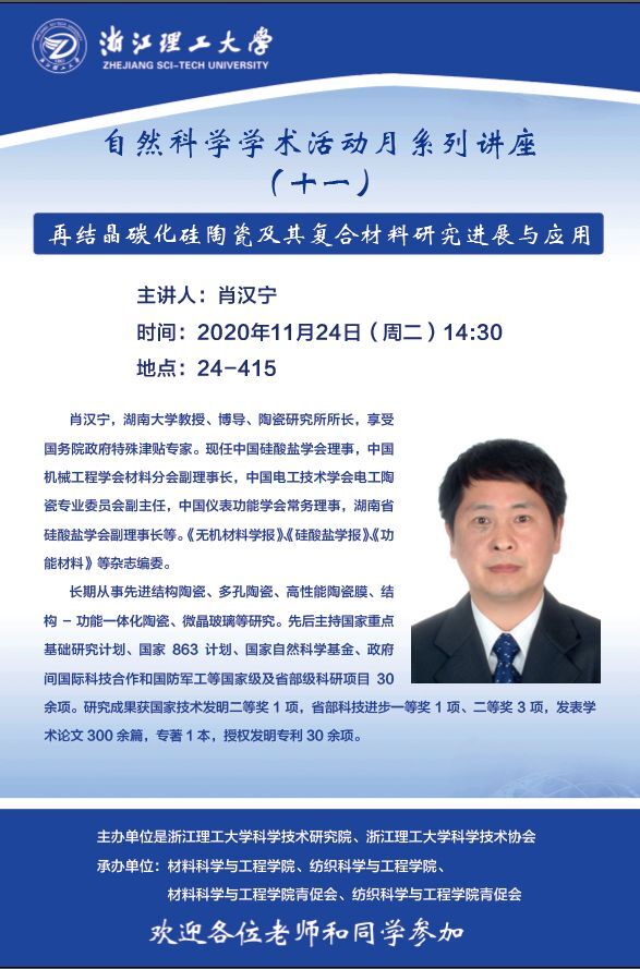 学术讲座【13】:再结晶碳化硅陶瓷及其复合材料研究进展与应用