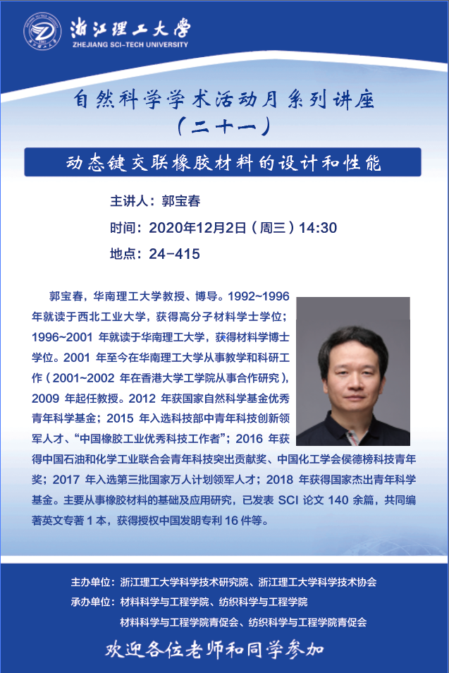 学术讲座【15】:动态键交联橡胶材料的设计和性能