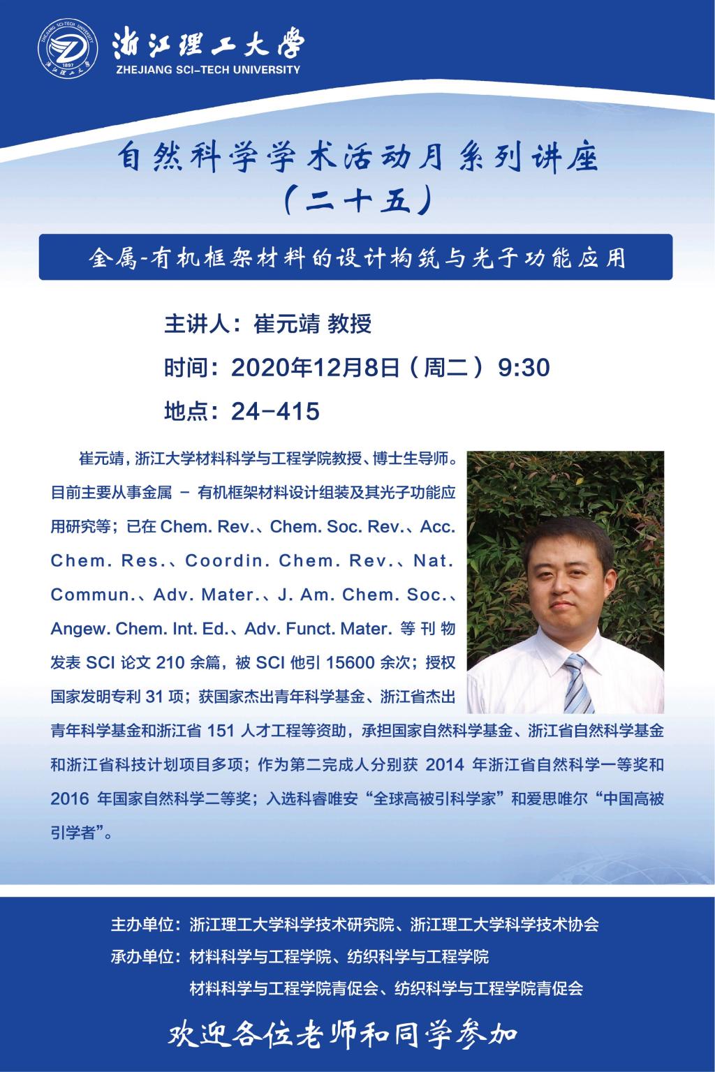 学术讲座【17】:金属-有机框架材料的设计构筑与光子功能应用