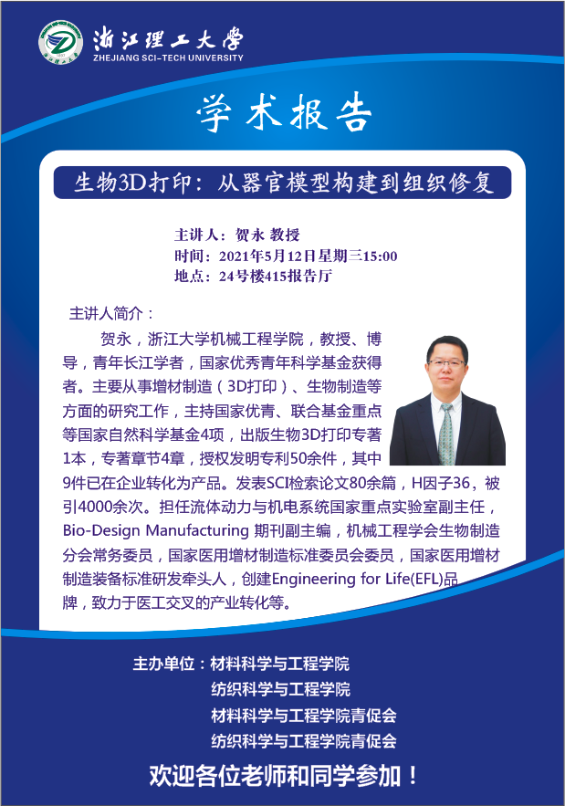 学术讲座【21】:生物3D打印:从器官模型构建到组织修复