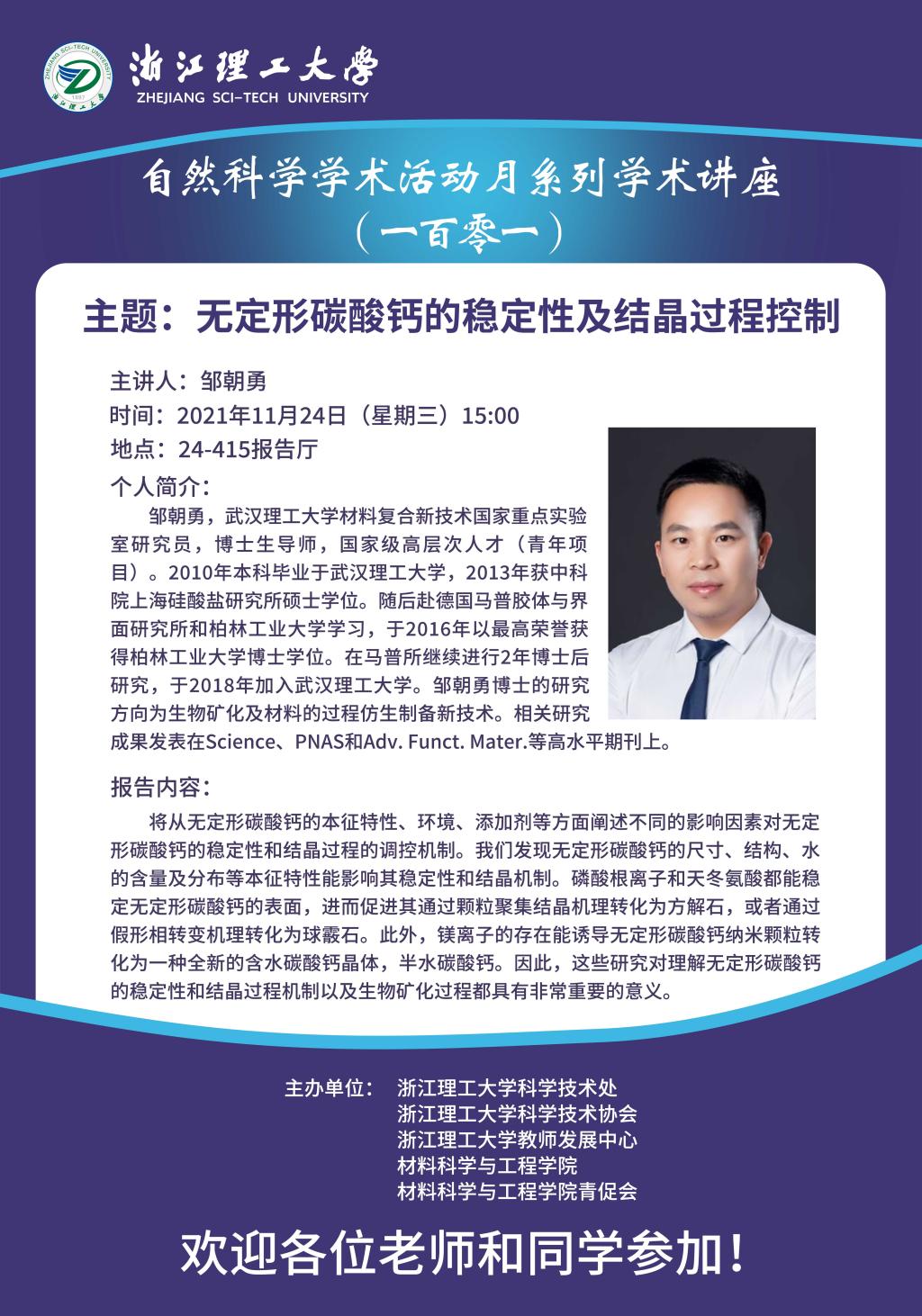 学术讲座【31】:无定形碳酸钙的稳定性及结晶过程控制