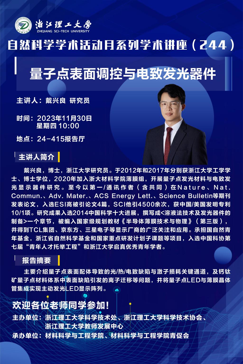 学术讲座【70】:量子点表面调控与电致发光器件