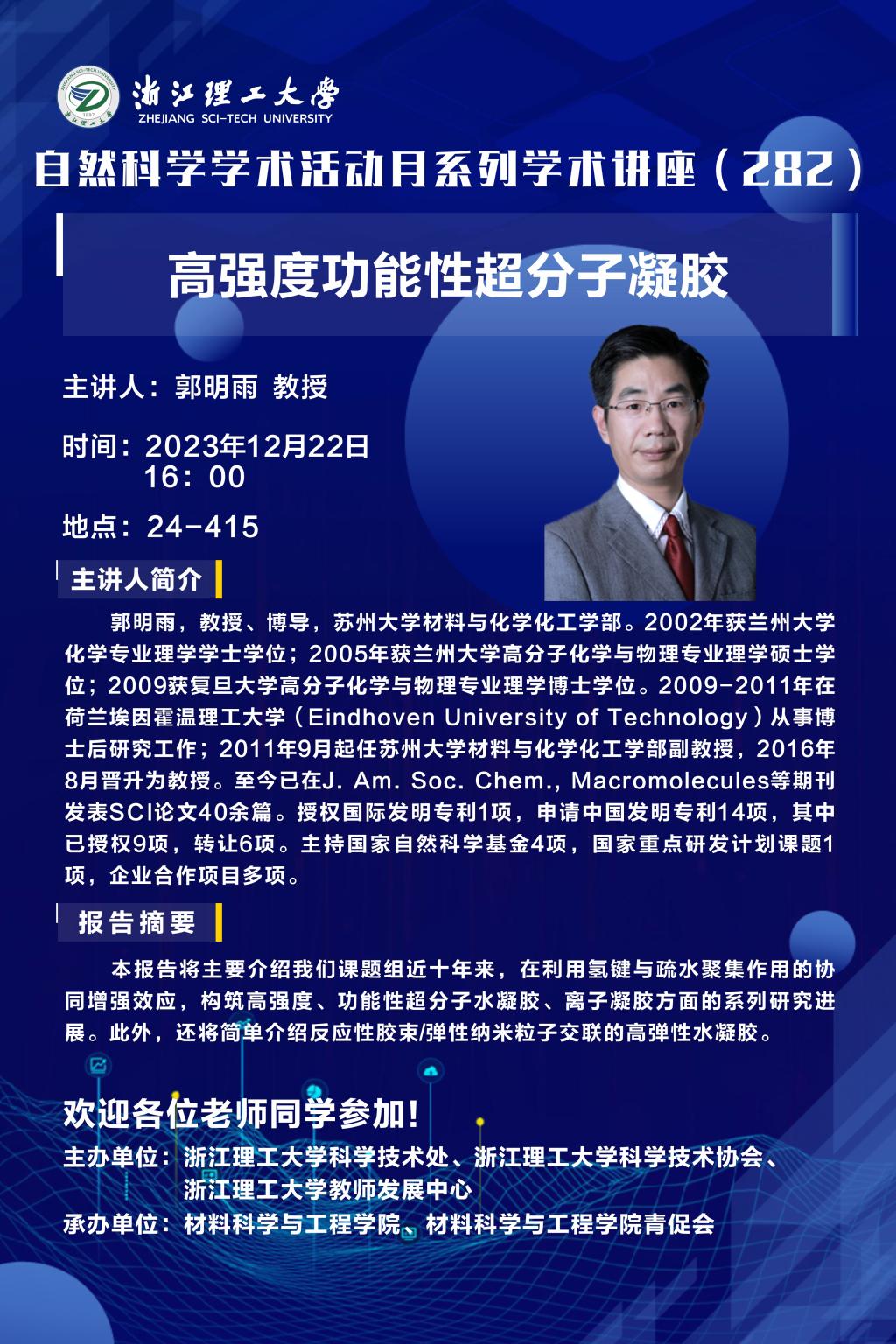 学术讲座【73】:高强度功能性超分子凝胶