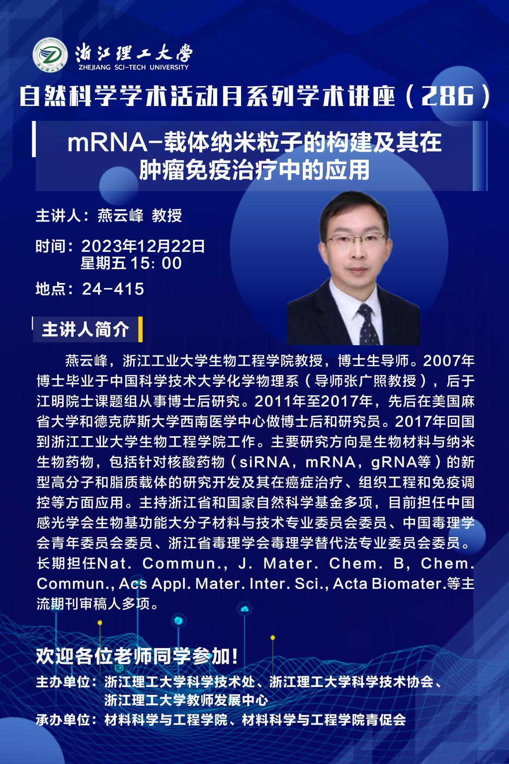 学术讲座【74】:mRNA-载体纳米粒子的构建及其在肿瘤免疫治疗中的应用