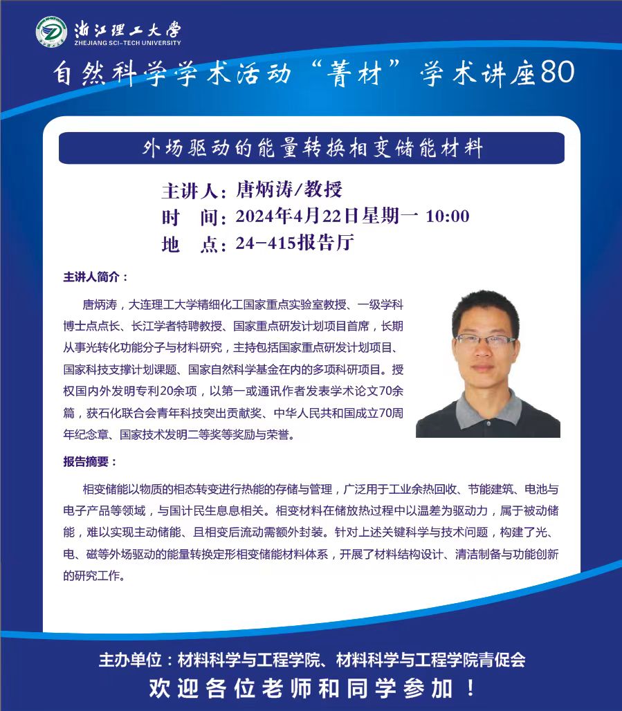 学术讲座【80】:外场驱动的能量转换相变储能材料