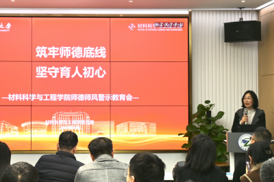 会上,仰滢带领全体人员进行师德师风建设专题教育,学习《中共中央 国务院关于弘扬教育家精神,加强新时代高素质专业化教师队伍建设的意见》《新时代高校教师职业行为十项准则》等内容,同时结合“身边事”开展“身边人”警示教育。学院班子成员、内设机构负责人和党员代表发言。