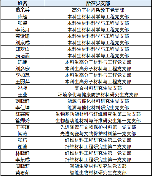 根据我校发展党员公示制的有关规定,根据个人意愿,支部意见,理论考试、组织考察和学院党委备案,拟将下列同志列为发展对象,将于近期发展成为中共预备党员。公示如下: