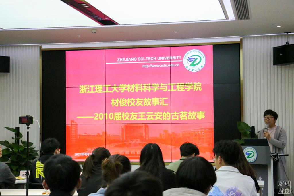 4月8日下午,yl88858永利集团“材俊校友故事汇——2010届校友,古茗创始人王云安的创业故事”正在415会议室如火如荼地进行中。本次活动邀请古茗创始人、2010届校友、材料学院首届校友会副会长王云安现场分享了他的成长故事。本次“故事汇”采取线上线下的方式同步进行,材料学院学生以及学校具有创业意向的学生共计300余人次共同聆听了“古茗茶饮”背后的成长故事。参加本次会议的有学院党委副书记周照东老师,会议由学工办主任、学院团委书记魏莉莉主持。