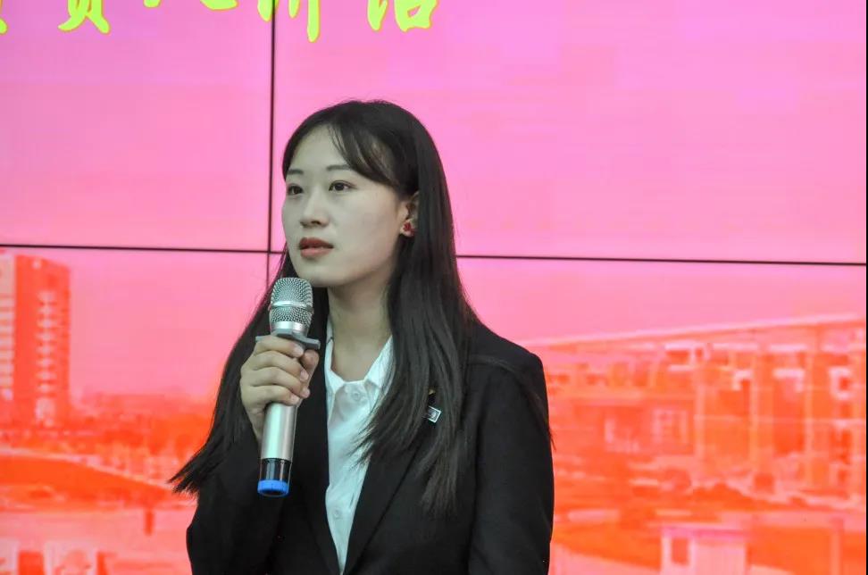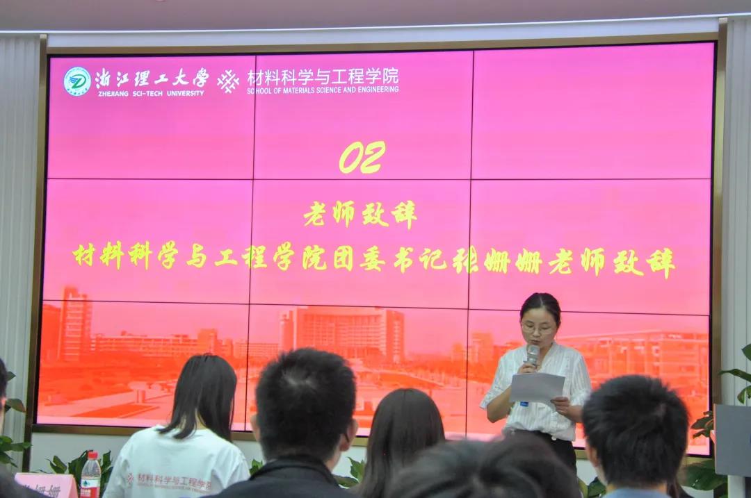 奏唱国歌之后,由张姗姗老师致辞。她向一直支持和关心我院共青团工作的老师、同学表达了衷心的感谢,对各年级、各班级学生骨干的学生工作优异成果表示了肯定,并希望大家能在接下来的工作中有所突破。