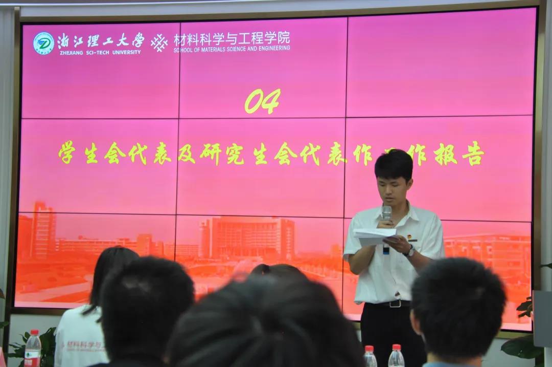 材料学院学生会代理主席吴冰瑶对学生会一年的工作进行了回顾与总结,介绍了学生队伍建设的规范和完善,阐述了各类文体活动的开展举办,并表达了院学生会对未来的思考及展望。