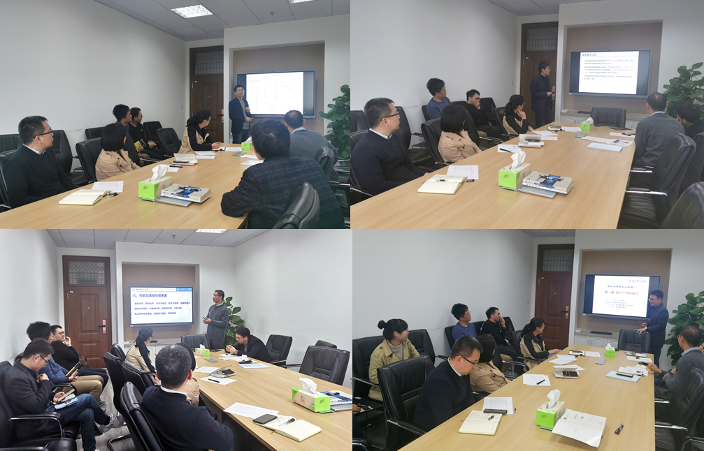 本次试讲以说课为主。祝洪良、陆潇晓、姚珠君、唐红艳、童再再、司银松、董余兵、陈世昌八位老师分别就《先进陶瓷材料》、《能源电化学》、《高分子化学与物理》、《纤维材料学》、《智能材料》、《高分子材料加工原理》课程的课程教学目标、教学内容、教材、课程建设计划、考核方式、前后课程衔接关系以及教师教学经历进行了介绍。老师们对所聘课程的教学内容进行了详细的解说,包括章节之间的衔接关系、重点内容的讲解、如何激发学生的学习兴趣、如何引入课程思政等。各位老师对于课程建设都有独到的见解,比如建设课程团队,利用超星平台、智慧树等进行线上线下混合式教学,在理论课程中加入实践内容等。